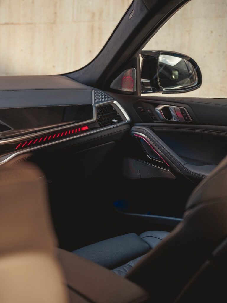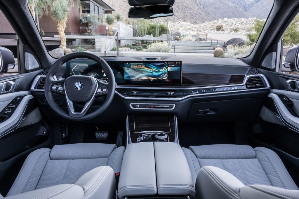Automobilio salono priekyje – išlenktas BMW monitorius, kurį sudaro du ekranai. Vairuotojai aktualiausią informaciją matys už vairo esančiame 12,3 colio informaciniame ekrane, o kitas svarbias funkcijas reguliuoti galima 14,9 colio valdymo ekrane. Dėl jutiklinio valdymo gerokai sumažėjo mygtukų ir jungiklių skaičius, tad automobilio salonas yra moderniai minimalistiškas.